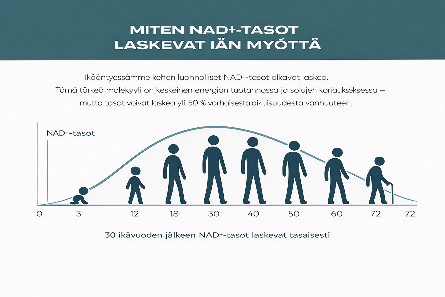- Cellehelse: Økte NAD+-nivåer kan bidra til sunnere aldring i kombinasjon med en aktiv og balansert livsstil.